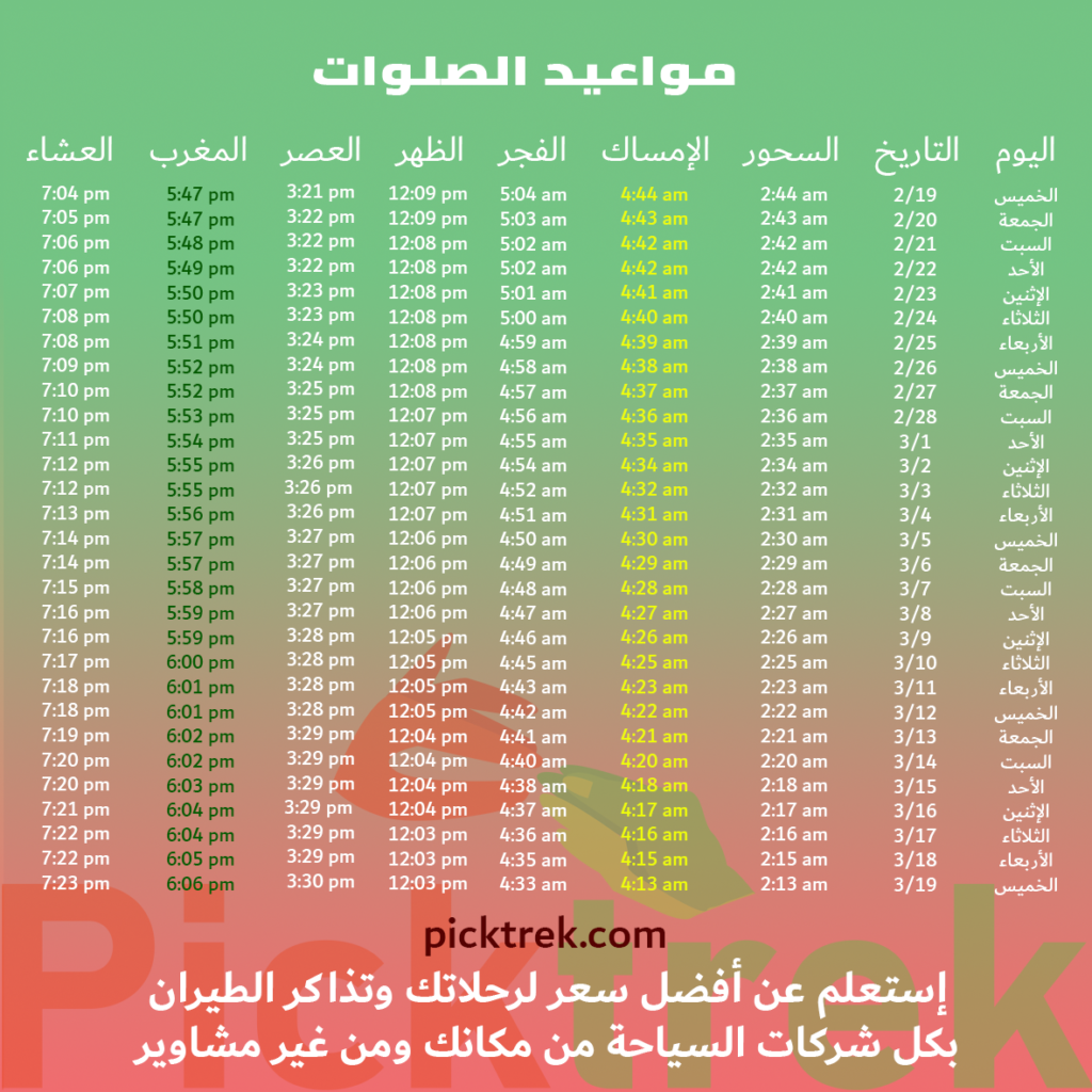 إمساكية شهر رمضان المبارك إمساكية يوم 1 رمضان 1447ه الموافق 19 مارس 2026م اللهم أهله علينا بالأمن والإيمان والسلامة والإسلام، ربى وربك الله